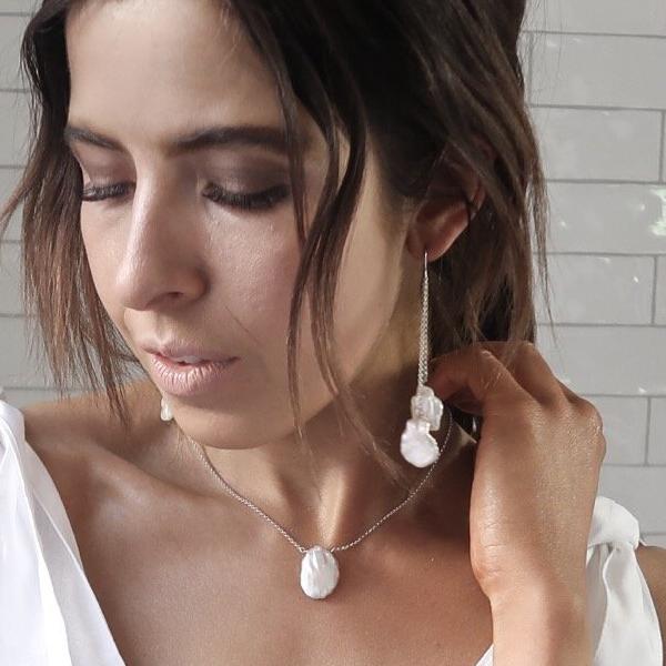 Made in Australia: The unique and visually beautiful Echo earrings consist of a duo of 2cm luminescent, freshwater Keshi pearls, which dangle from sterling silver hooks, at the base of 5 and 6cm sterling silver chains.